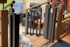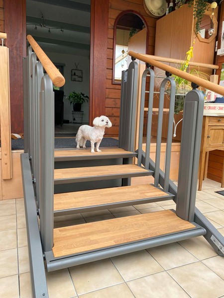 Nicht nur Rudi und seine Frau, sondern auch ihr kleiner Hund sind uns dankbar, denn eine bessere Lösung als diesen Treppenlift konnten sie uns nicht vorschlagen. Da wir diesen Lift auf Lager hatten und das Problem sehr akut war, konnten wir ihnen innerhalb von 2 Wochen helfen, so dass Rudi seine obligatorischen Besuche im Krankenhaus fortsetzen konnte.